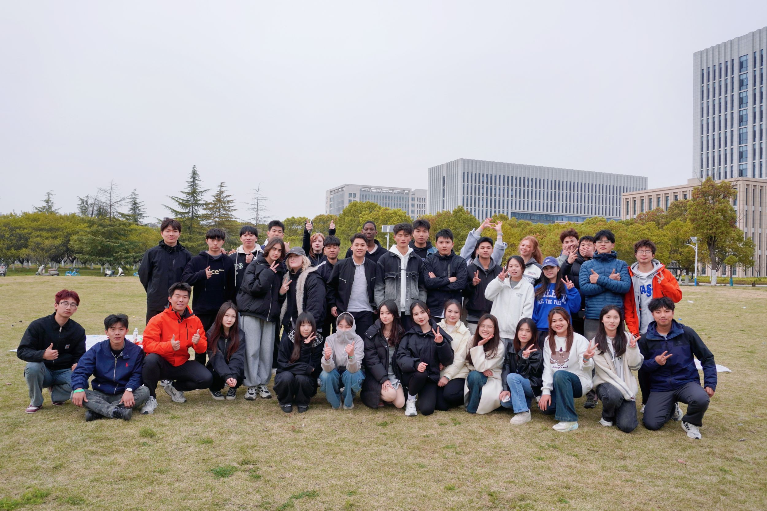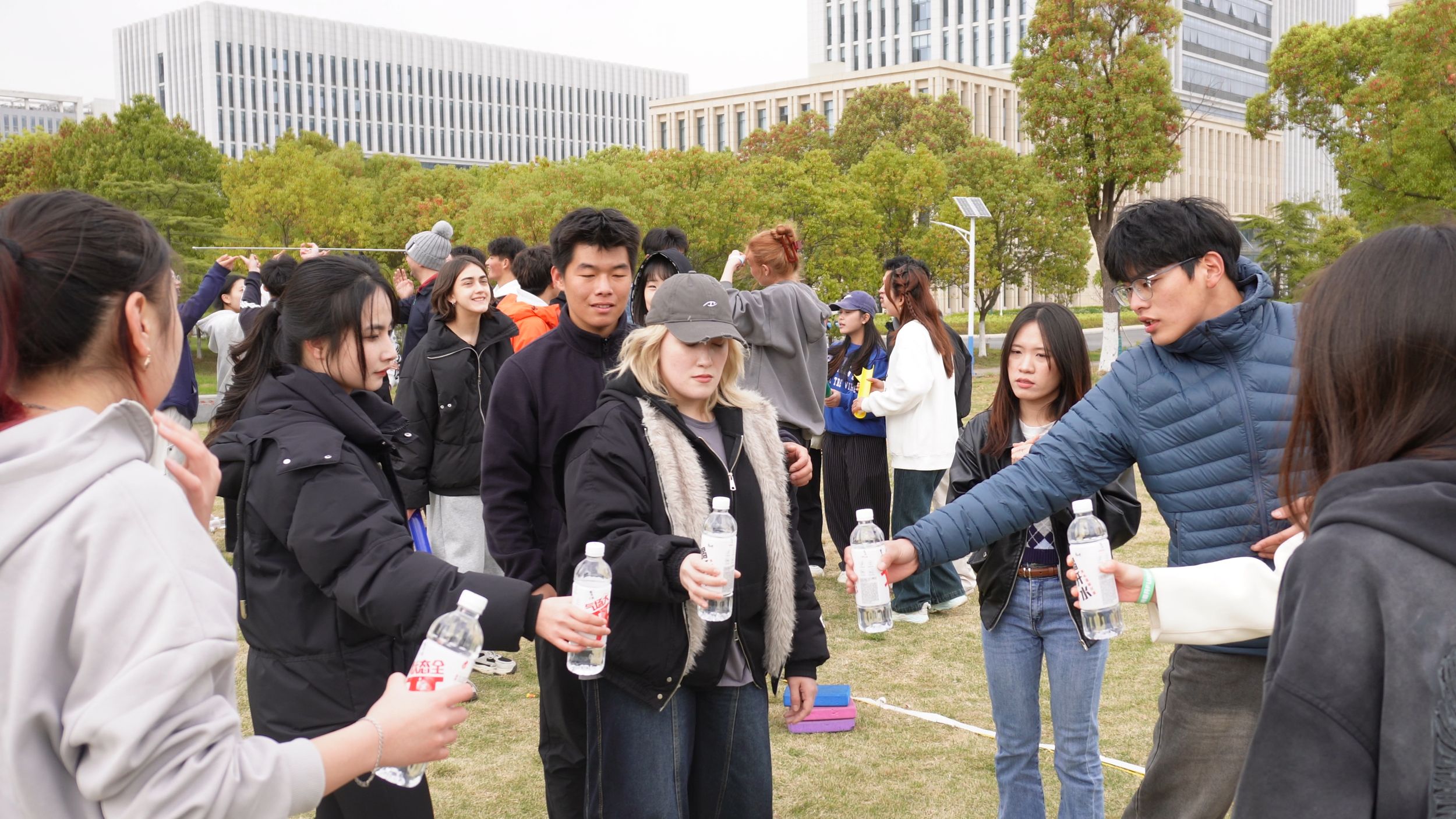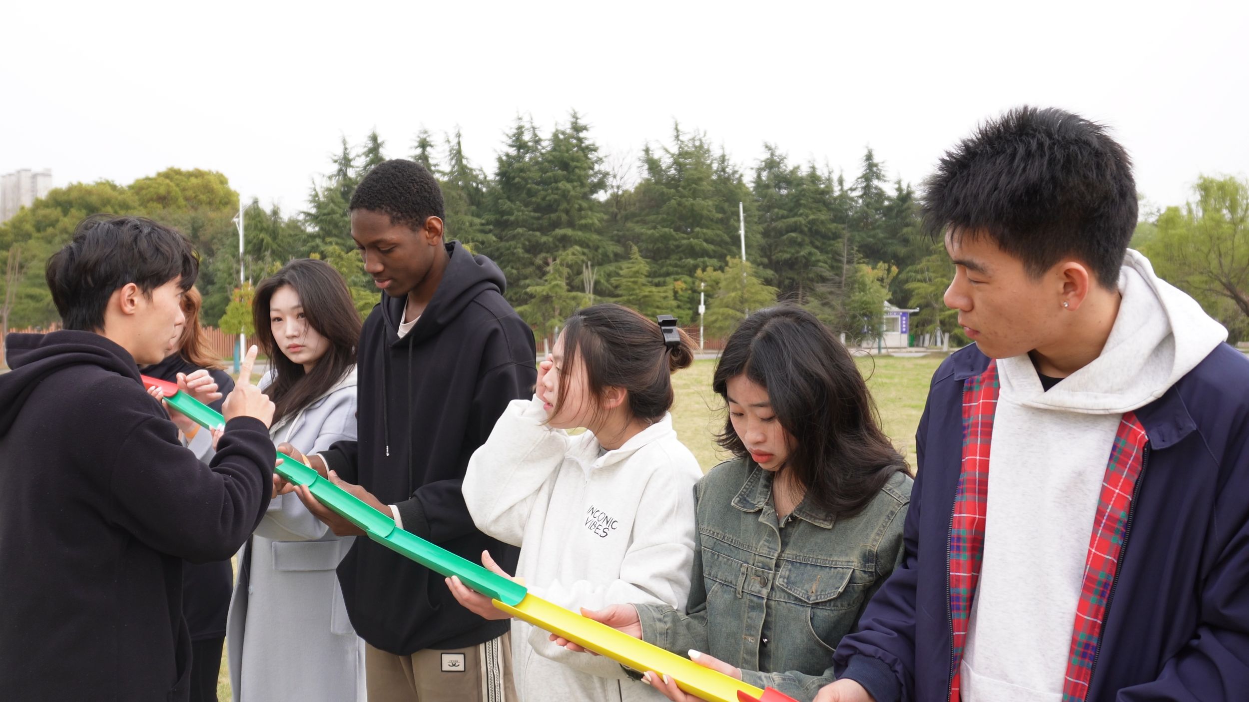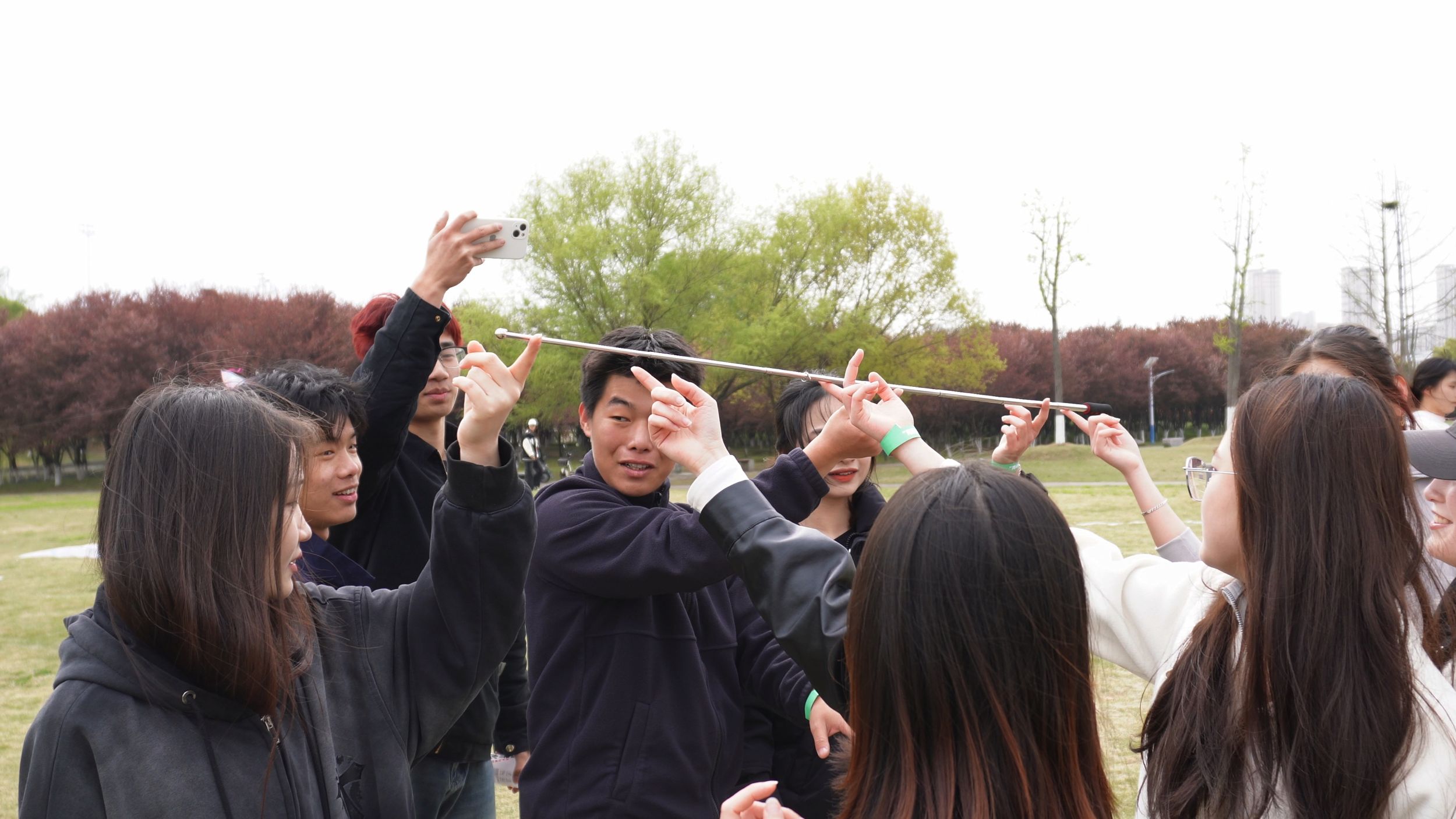 3月29日下午,体育公司2023级体育教育(师范)专业二班与公司职工在花津校区津南草坪联合开展户外团建活动“青春开FUN计划”,60余名中外同学踊跃参与,在春日暖阳中共享欢乐时光,促进了文化交流。活动以趣味游戏为主线,精心设计多个团队协作项目。“桃花朵朵开”游戏中,同学们围圈奔跑、灵活组队,迅速拉近彼此距离;“珠行万里”考验团队默契,各小队通过PVC管槽接力运送小球,现场大家争分夺秒,笑声不断;“不倒森林”环节,参与者需精准配合,共同维持木棒不倒,充分展现集体智慧和密切协作。游戏“气球接力”则以趣味竞技将气氛推向高潮。活动过程中,组织者还贴心准备了零食和矿泉水,为同学们补充能量,吃好玩好,不亦乐乎。