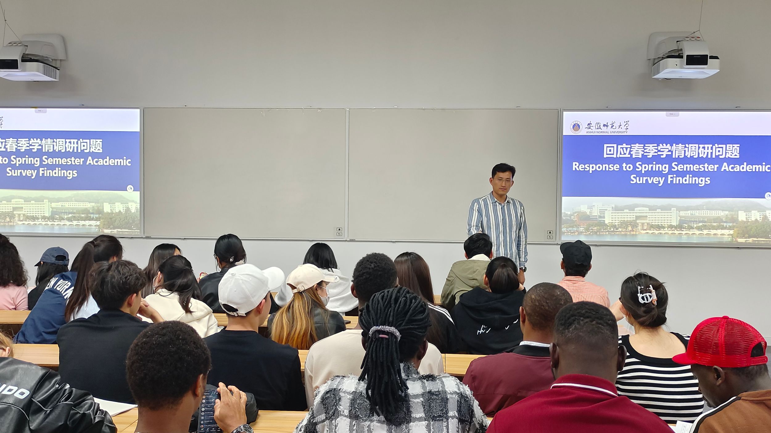 4月25日下午,公司在望道楼A102教室组织召开了国际员工“学业与发展”主题班会,班会由职工辅导员郑甲申主持,全体国际员工参加会议。