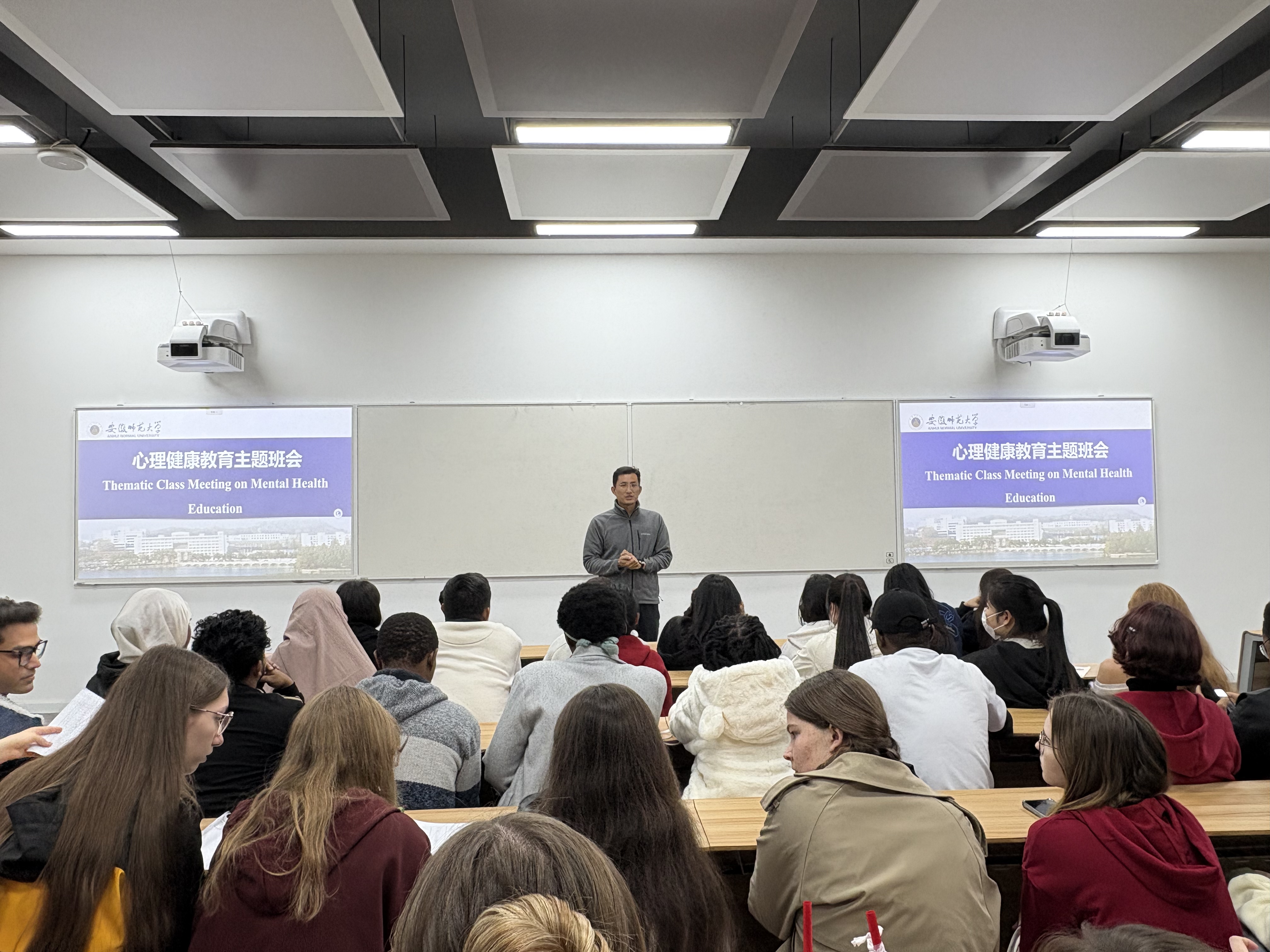 10月31日下午,公司职工辅导员郑甲申组织全体在校职工在望道楼A102教室召开心理健康教育主题班会,为远道而来的学子们提供一个交流与支持的平台,帮助他们更好地适应中国的生活。