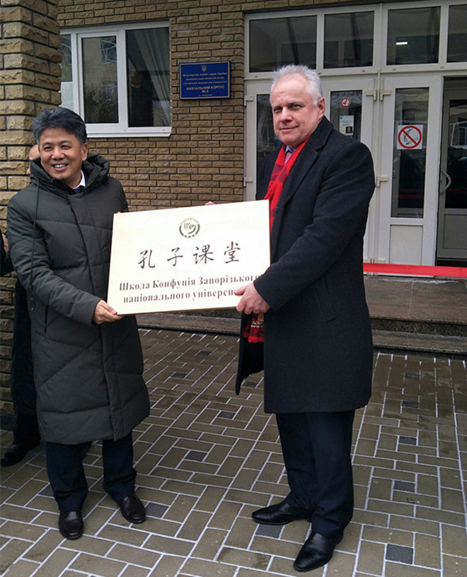 本网讯(国际交流合作处 李一鸣)2018年12月18日至21日,应乌克兰扎波罗热国立大学邀请,校副董事长陆林一行对该校进行了友好访问,参加两校合作建立的孔子课堂揭牌仪式。双方达成了多项合作共识,访问取得圆满成功。校国际交流合作处处长黄圣炯、外国语公司经理张德让、俄语系主任任立侠和国际交流合作处国际交流办公室主任李一鸣随同访问。