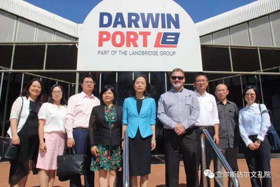 总部代表团首先来到达尔文港(Darwin Port)访问。达尔文港位于达尔文市南部,目前由中国的岚桥集团(Landbridge)负责经营和管理。岚桥集团是一家位于山东省的私营跨国公司,2014年收购了澳大利亚昆士兰州的天然气生产商西部能源公司(WestSide),开始了在澳大利亚的经营业务。2015年10月,岚桥集团与北领地政府签订协议,获得达尔文港99年的产权,主要经营物流、石油和天然气等。岚桥集团准备将达尔文港建成澳大利亚通往亚洲的门户。岚桥达尔文港业务经理皮特(Peter)向代表团详细介绍了港口的发展历史、经营内容、未来规划等,还带领客人参观了港口总控制室和货运码头。静炜主任仔细询问了岚桥集团与澳方合作等方面的问题,并表示愿意为岚桥集团澳方工作人员提供汉语培训服务,为中澳友谊的持续发展提供力所能及的帮助。