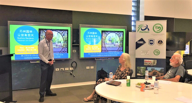查尔斯•达尔文大学孔子公司澳方经理戴维•杨(David Yong)教授担任本次汉语角主持。他参观过苏州园林,有亲身体验,他和大家一起分享了自己的感同身受。