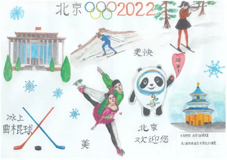 农历大年初四,恰逢立春节气,北京冬奥会在这样喜庆的日子里拉开序幕。扎波罗热国立大学孔子课堂谨以员工在“画冬奥,学中文“比赛中的获奖作品,喜迎冬奥会的召开。