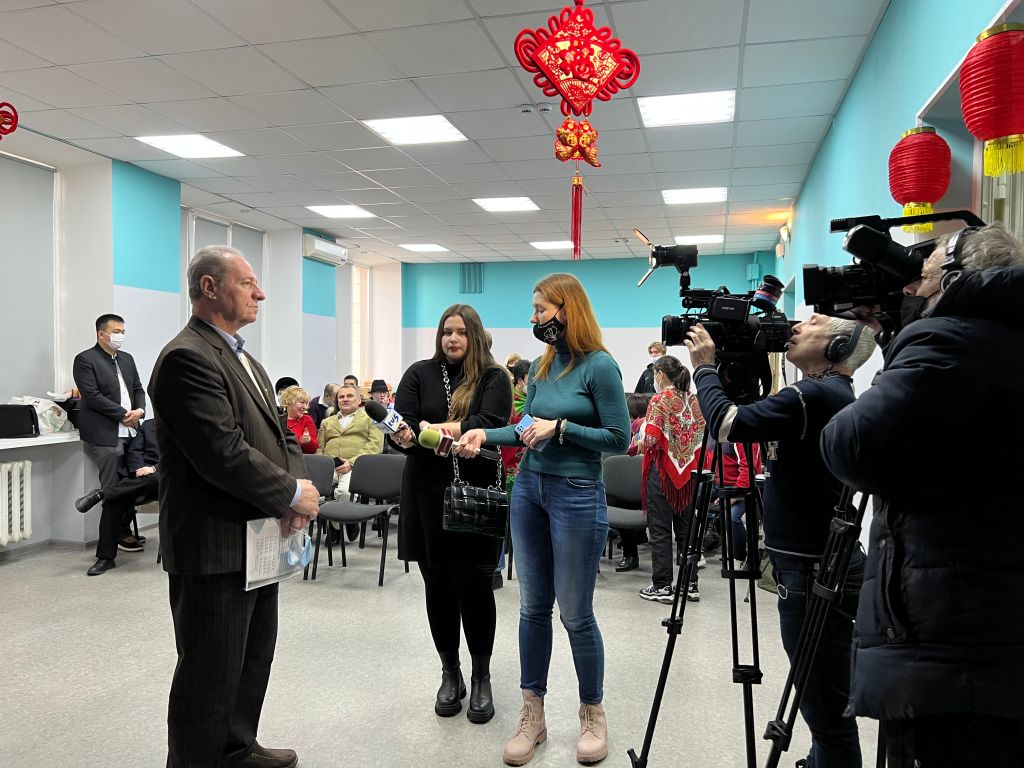 活动伊始,孔子课堂全体老师在中乌双方经理的带领下,将扎波罗热市图书馆会议室用灯笼、纸扇、福字、中国结等装饰得焕然一新,浓浓的中国风扑面而来。市电视台专程派人进行采访和报道。会议室里济济一堂,热闹非凡。