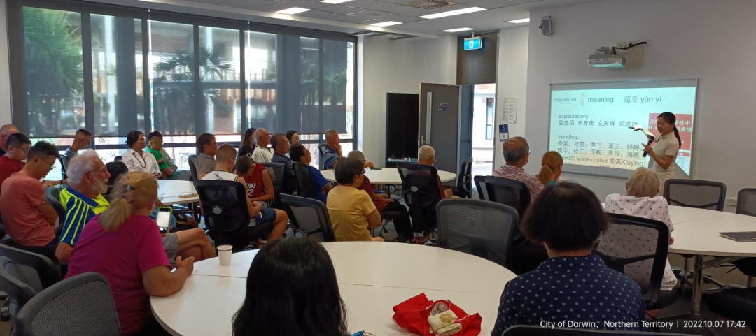 2022年10月7日,查尔斯·达尔文大学孔子公司成功举办了第62期汉语角活动。本期活动的主题是“取吉祥名字,过如意人生”,主讲人是公派中文教师李露。参与本次活动的嘉宾近40位,包括澳方经理大卫·杨、中方经理赵志清、达尔文本地的汉语学习者、定居当地的华人和孔子公司的老师们。