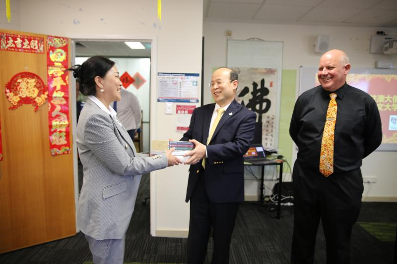 最后,艾米经理与肖千大使互赠了礼物,大使赠予孔院中国文化系列书籍,鼓励孔院继续推广汉语和中国优秀传统文化,为社区文化多样性贡献力量;艾米经理赠予肖千大使一条当地居民手工制作的领带,希望大使能够将达尔文的文化风情带给中国。