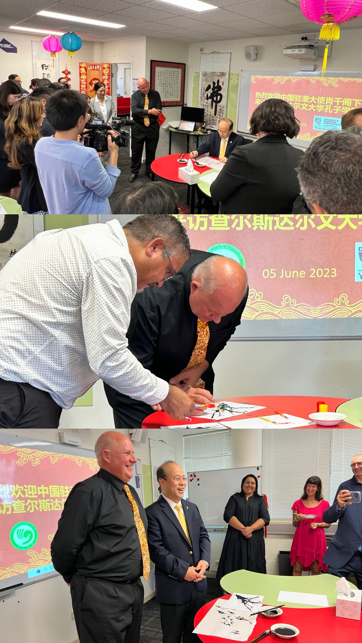 近日,中国驻澳大使肖千先生到访查尔斯·达尔文大学孔子公司。查尔斯·达尔文大学董事长斯科特·鲍曼、孔院外方经理艾米·于及孔院全体教师全程接待了大使一行,并与大使进行了亲切会谈和交流。