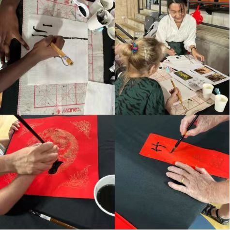 在达尔文,春节是当地华人群体最重要的节日。“中华会”作为一个有着一百多年历史的华人团体,每年都举办新春庆祝活动并邀请孔院参加,这已经成为社区的传统。这次孔院老师给来宾们带来了各式各样的中国新年习俗,如“贴春联”、“放炮竹”、“吃饺子”,并一边书写“福”字、“出入平安”等常见春节祝福语,一边讲解它们的寓意,吸引了来宾们纷纷驻足。有的来宾还在老师指导下亲自临摹了“福”字并写上自己的中文名字。孔院两位老师杨启萌和王宣还向来宾们进行了一场竹子、梅花、菊花这些中国特色水墨画的“现场教学”。