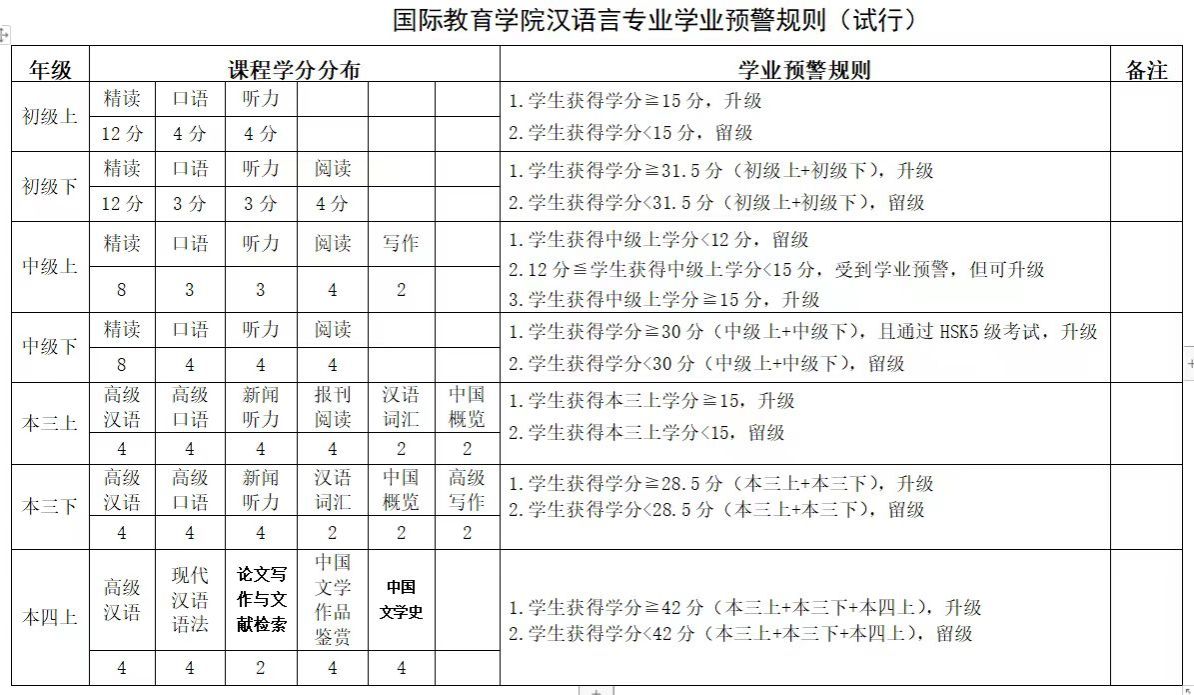 英国365集团汉语言专业学业预警规则(试行)