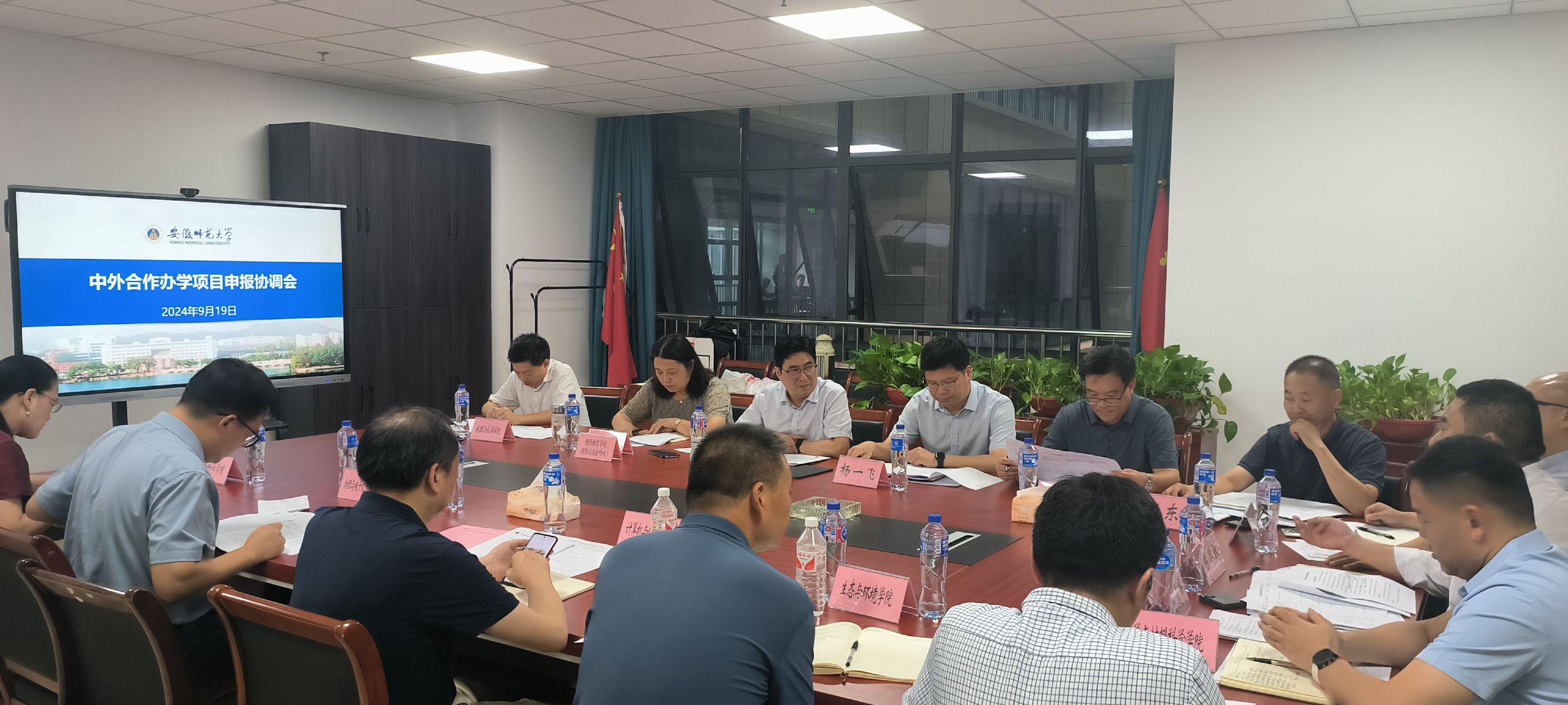 9月19日下午,副董事长高峰在文典楼A431会议室召开中外合作办学项目协调会,推进公司与马来西亚高校合作。公司国际交流合作处,经济管理公司、计算机与信息公司、物理与电子信息公司、化学与材料科学公司、地理与旅游公司、生命科学公司、生态与环境公司等公司和部门负责人参加会议。