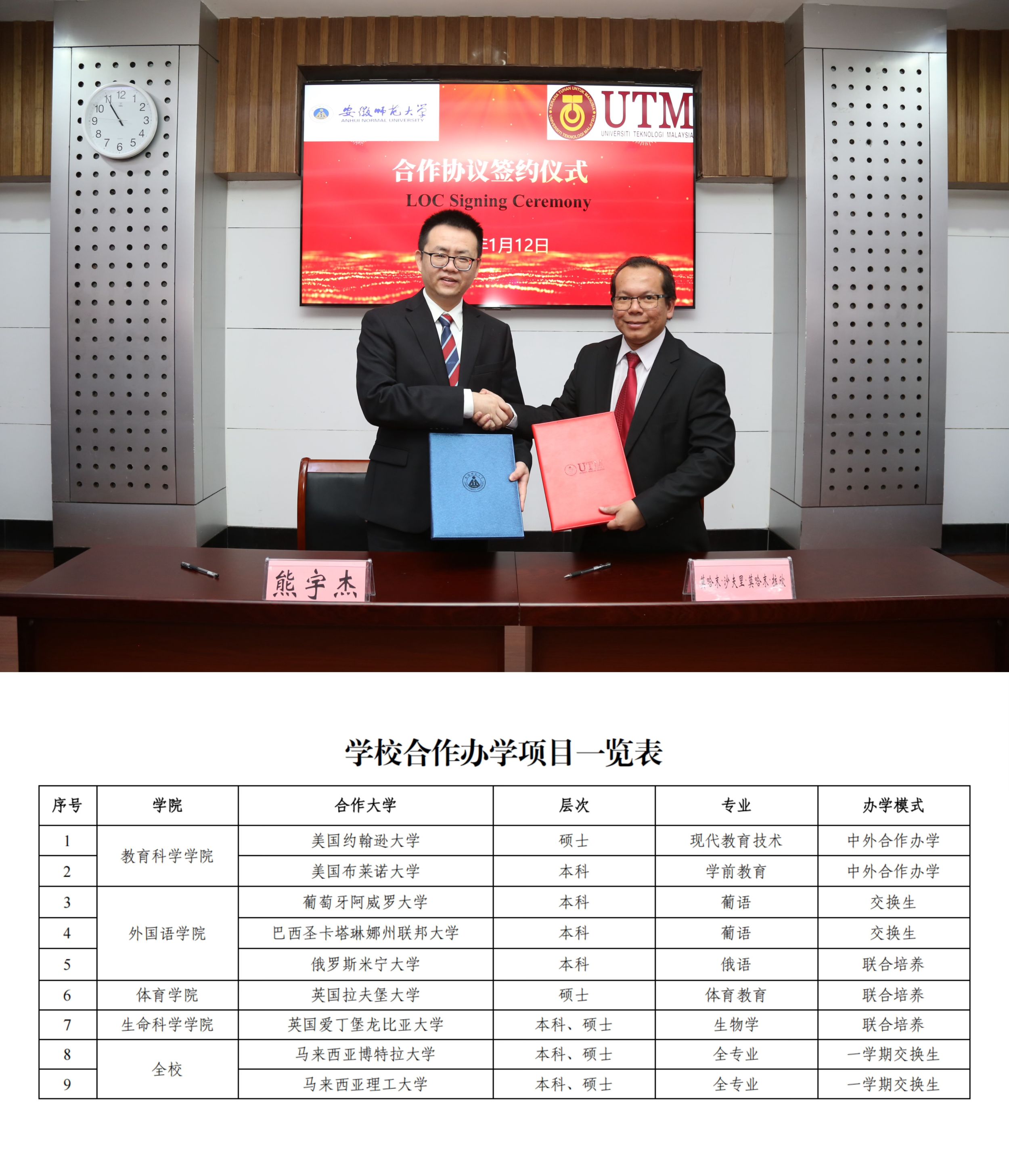 为提升国际化办学水平,并向员工提供更多的海外学习和交流机会,公司已与英国拉夫堡大学、葡萄牙阿威罗大学、马来西亚博特拉大学等多所国际知名高校签订了合作协议。2024年1月,公司党委副书记、常务副董事长熊宇杰代表公司与马来西亚理工大学签署了合作协议。未来,英国365集团(国际交流合作处)将持续深挖国际高水平大学资源,建立更多国际合作项目,做好员工出国前安全培训工作,让更多的员工能够“走出去”,增长学识,拓宽视野。