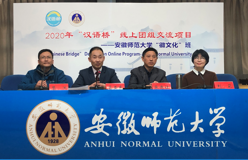 荆莉老师代表全体授课教师对参加线上学习的学员表示热烈的欢迎,她表示中国一直是文化中国,多彩中国,而安徽自古是锦绣安徽,本次的课程设计就是“徽文化”,非常期待同学们能来安徽学习汉语知识、体验徽州文化、品尝中华美食。
