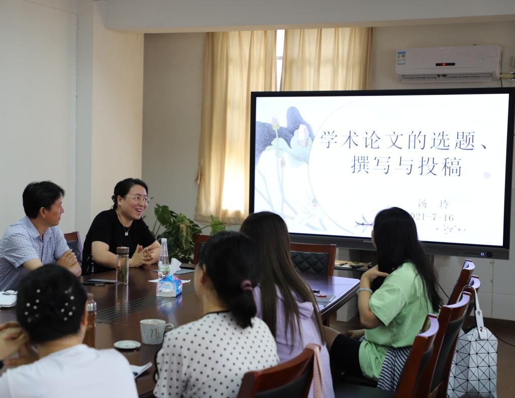 汤玲老师讲座的主题是《学术论文的选题、撰写和投稿》。她开篇明确介绍了公司认定的语言学C刊刊物种类以及公司关于高级职称评定的相关要求。然后以自己新近发表的2篇C刊论文为例,细致分享了论文的选题、修改、投稿、再修改等各个方面的细节和注意事项。最后,汤玲老师从自身科研体会总结了一篇论文从起笔到见刊的心得和建议,提出要能“坐下来、沉下来”才能有好心态做科研;要多看书、多练手、及时了解科研前沿动态才能有成果回报。